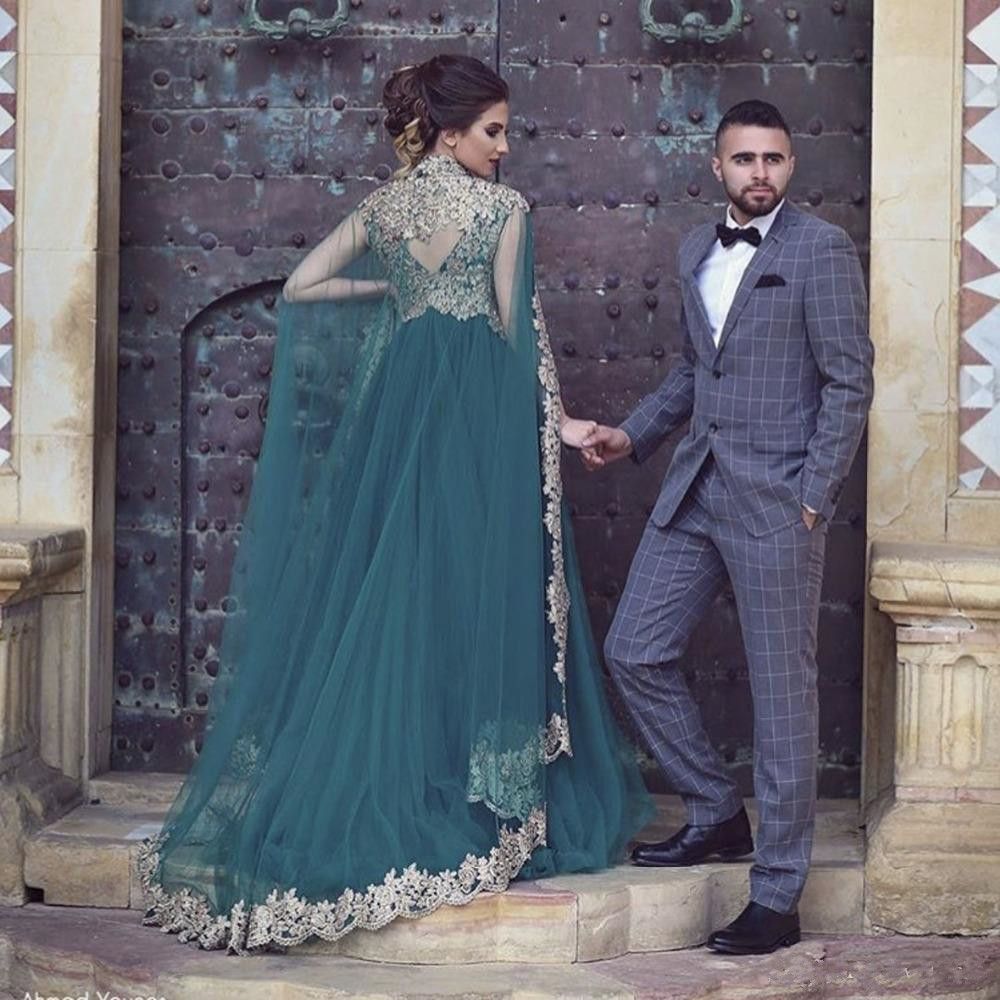 Acquista 2019 Fashion Hunter Green V Neck Applique Abiti Da Ballo Senza Maniche Con Mantello Fidanzamento Abiti Da Sera Abito La Madre Della Sposa Taglie Forti A 110 84 Dal Hxhdress Dhgate Com